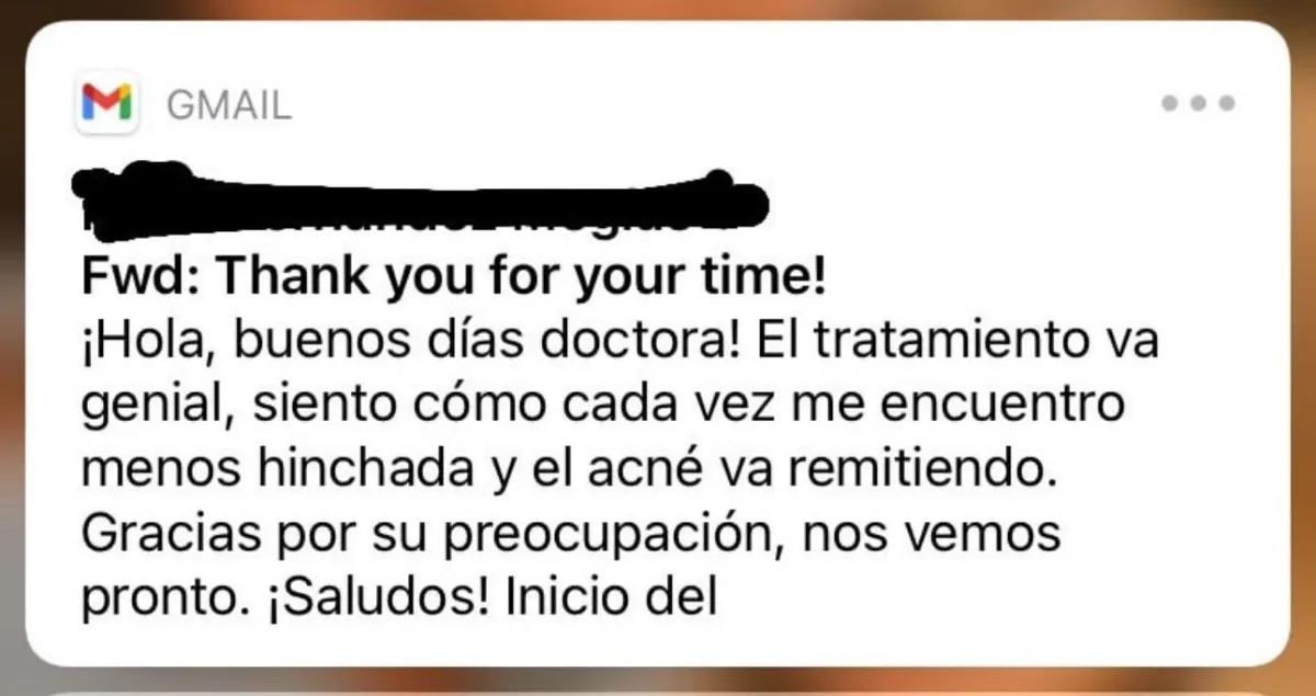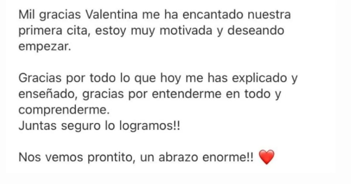 "Hola amiii. Me vinooo. Después de año y medio. No sé cuanto me vino. Poquito creo. Fue hoy en la mañana."